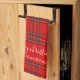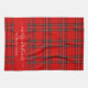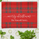 Merry Christmas red tartan plaid script name kitchen towel. Personalize with text..