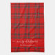 Merry Christmas red tartan plaid script name Tea Towel