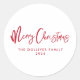Merry Christmas | Red Typography Round Sticker. Minimalistic and simplistic. Customise the font and colours. Message the designer if you would like to customise further.
