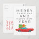 MERRY CHRISTMAS Red Vintage Car Postcard