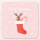 Merry Christmas Reindeer Christmas Stocking Square Paper Coaster