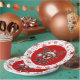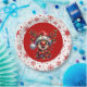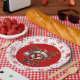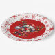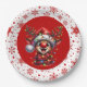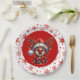 A Festive Red And White Christmas Paper Plate With Rudolf The Little Red Nose Reindeer And Red Snowflakes