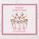 Merry Christmas Reindeer Festive Party Personalised Name Sparkling Wine Labels Stickers features festive reindeer with pink bows and floral accents with the text "Merry Christmas" in modern pink calligraphy script typography with your personalised name. Perfect personalised gift for Christmas and the holidays for family and friends. Designed by ©2024 Evco Holidays www.zazzle.com/store/evcoholidays
