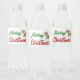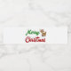 Water bottle label with Merry Christmas in 3D green and red text and a reindeer. Available for several bottle styles and sizes.