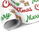 Wrapping paper with Merry Christmas in 3D green and red text and a reindeer. Available in several styles and sizes.