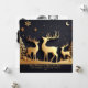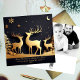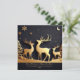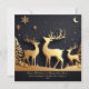 Enjoy sending out a beautiful trio of reindeers standing on hills in the forest looking at the sky with snowflakes and moon. Photo template on back and greeting text templates on front. Black background.