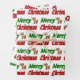 Wrapping paper sheets with Merry Christmas in 3D green and red text and a reindeer.