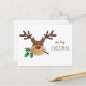 Merry Christmas Reindeer With Mistletoe Holiday Postcard