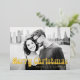 Merry Christmas retro font deep green photo Foil Holiday Card