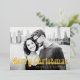 Merry Christmas card with your custom photo on the front and real foil text "Merry Christmas" in a bold, retro font.
