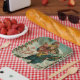 Merry Christmas - retro postcard, children, holly Paper Plate