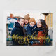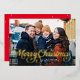 Say Merry Christmas in style with this classic holiday photo card. Featuring a unique flourish retro script in gold on the front, this holiday card has room for a large family photo on the front and three photos on the back. The dotted red back also includes a place for custom text - a family update, well wishes and more. This classic family Christmas card can be found in a variety of colours and styles in the collection by Lea Delaveris Design.