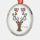 Christmas ornament in the round shape. Shown here in White with text of Merry Christmas and print of a plaid deer with antlers.