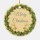 Add festive charm to your home with this beautifully designed round Christmas ornament. Featuring a warm golden background, pine wreath, red berries, and elegant reindeer details, this piece is perfect for decorating your tree or gifting during the holidays. Crafted from premium ceramic with customizable options to make it uniquely yours.