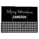 Wrap your holiday presents in style with this rustic buffalo plaid Christmas gift bag from Plaid Perfection. Featuring a bold black and white plaid base, a sleek black background, and festive editable “Merry Christmas”, this bag also includes space to personalise with any name/text for an extra-special touch. Perfect for wrapping Christmas gifts for family, friends, or coworkers, this reusable bag brings cosy holiday charm to every celebration. Edit text from the product page or to change font style or colour, use the design tool.