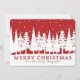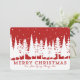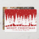 Merry Christmas customisable name and photo card in rustic red and white snow covered forest pattern. Add your custom text to this card to create a unique christmas photo greeting this holiday season for friends and family.