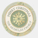 Merry Christmas Sage Green and Gold Snowflake Name Classic Round Sticker