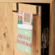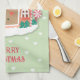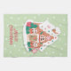 Merry Christmas Sage Pink Snowy Gingerbread House Tea Towel
