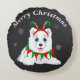 Merry Christmas Samoyed With Elf Headband Round Cushion