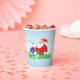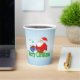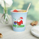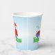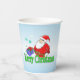 Merry Christmas Santa Claus with Gift personalised Christmas paper cups feature original art including Santa moulding out a colourfully wrapped gift with a red ribbon, blue and white snowflakes against light blue sky, and Merry Christmas spelled out in a green dimensional font that matches the ribbon on the gift. These pretty cups add a festive look to your holiday party. Personalise them by adding your own images, text or background.