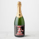These sparkling wine labels features the phrase "Merry Christmas" in a Gaglin print font with red coloured letters white outline with a Santa Claus coming out of the chimney inside of a red/white peppermint candy cane plus snowflakes in the background in this X-mas day style and theme. All labels are printed with photo-quality printing great for customising weddings, birthday parties, and baby showers.