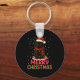 Merry Christmas Santa Hat Funny Black Cat Men Wome Key Ring