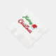 Paper napkins with Merry Christmas in 3D green and red letters and a Santa Claus hat. Napkins available in several colours and styles.