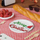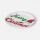 Paper plates with Merry Christmas in 3D green and red letters and a Santa Claus hat. Plates available in several sizes.