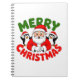 A cheerful Christmas illustration featuring a smiling Santa Claus wearing a classic red hat, flanked by two adorable penguins in Santa hats. The bold “Merry Christmas” typography in festive red and green pops beautifully against a black background, creating a fun, playful holiday vibe. Perfect for Christmas t-shirts, hoodies, mugs, stickers, greeting cards, and seasonal gifts that spread joy and winter cheer.