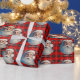 Merry Christmas Santa Festive Red Tartan Plaid Winter Holiday Wrapping Paper Gift Wrap features Santa Claus with sprinkles of snow with the text "Merry Christmas" with your personalised name below on a red tartan background. Perfect for Christmas holiday gift wrapping for family and friends. Designed by © Evco Holidays www.zazzle.com/store/evcoholidays