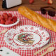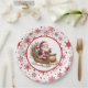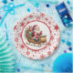 An Adorable Christmas Paper Plate Designed In Red Snowflakes And A Happy Santa In His Sled
