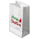 Merry Christmas Santa Sleigh red green script Small Gift Bag