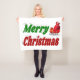 Merry Christmas Santa Sleigh red green typography Fleece Blanket