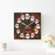 Add a festive touch to your home with this Merry Christmas Santa Wall Clock, featuring a whimsical design of multiple jolly Santa faces in red hats surrounding a beautifully decorated Christmas tree and cosy fireplace scene. The clock’s warm background includes stockings, wrapped gifts, and the cheerful "Ho Ho Ho" and "Merry Christmas" text in bold red, making it a perfect holiday centerpiece.