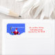 A funny Christmas address label with Santa Claus waist-deep in snow holding a snow shovel.