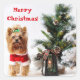 Merry Christmas Santa Yorkie with Christmas Tree Square Sticker