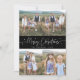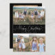 Elegant and modern holiday card featuring a script text that says "Merry Christmas" with stars and 4 pictures. Add another photo on the back along with your message. Background is black.