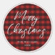 Merry Christmas Script Calligraphy Plaid Classic Round Sticker