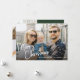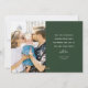 Send Season Greetings with this Modern Script Lettering Photo Christmas Holiday Card. Design features a picture of your choice with a dark overlay on the bottom with white text 'Merry Christmas, & a Happy New Year, family name and year. On the reverse you can add a second photo, cutomize the message and names. The festive green background can be changed to any colour.