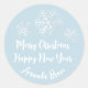Merry Christmas Script Name Snowflakes Grey Blue Classic Round Sticker