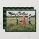 Merry Christmas Script Navy Plaid Photo Holiday Card