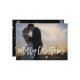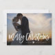 Modern holiday card featuring the words "merry christmas" in a white, handwritten script with your photo displayed behind. White overlay, heart and text can be positioned anywhere on the card. The back of the card features a white snowflake pattern.