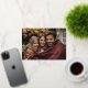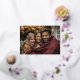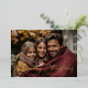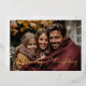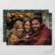 Merry Christmas Script Photo Foil Holiday Card features the words 'Merry Christmas' in an elegant and stylish script font across the bottom of the card. A watercolor festive foliage pattern with berries, holly and pine leaves is on the back of the card. Customise with your own family photo, name and year. A stylish Cristmas card your loved ones will cherish.