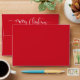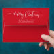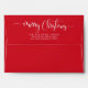 Attractive red envelope with "Merry Christmas" phrase in beautiful red hand written Calligraphy framing your name(s) and return address information on back top flap. Inside in white with watercolor greenery detail with red banner and holly, with two text areas for message giving you the ability to really personalise this design and make it your own. Collection with coordinating products available.
