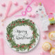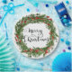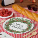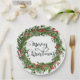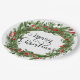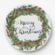 Merry Christmas Script Red Holly Leaves Wreath Paper Plate