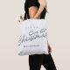 This design features a merry Christmas script, minimal, silver snowflake tote bag, with a minimalist, elegant, simple style, a custom, personalised tote bag