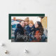 This simple holiday card features "Merry Christmas" in script at the bottom of a single horizontal photo. This Christmas photo card is perfect for use as a family Christmas card. The card back is a festive dark green dotted with stars and also includes room for three more photos and a longer custom message. Send holiday cheer with this simple four-photo Christmas card design by Lea Delaveris Design that's also available as a digital download.