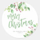 Merry Christmas script simple modern elegant Classic Round Sticker