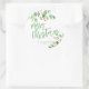 Modern stylish Merry Christmas green handwritten typography script simple gift label round sticker with your name featuring watercolor botanical greenery and holy berries.