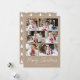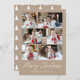 Modern holiday card featuring 6 of your photos arranged in a collage layout. "Merry Christmas" is displayed in a handwritten white script with your family name and the year shown below on a taupe background. The multi-photo holiday card reverses to display a taupe and white Christmas tree pattern.